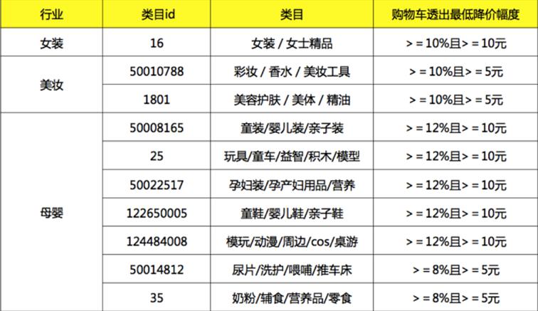 4.每个类目都有不同的最低价门槛要求