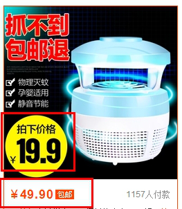 一口是49.9,然后主图上写着拍下19.9元,你会不会去点?这样方法比较适合于定位于中低端消费的人群,客户看到之后,有一种天然的这种感觉,虽然这个产品就是买19.9元到但是你会在买的时候觉得是花了19.9元卖到49.9元的产品。所以说,这叫利益诱惑,给他感受占便宜的感觉。