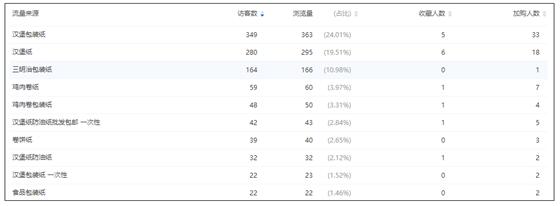 这是一款汉堡纸,但是这个也能当鸡肉卷纸,大多数情况下,很多人写标题的时候,这些关键词都会用上。但是我们看这款宝贝,你能够明显的分析出来,汉堡纸带来的权重要更高,然后出现了频率比较高的词还有“一次性”、“批发”、“包邮”等等。那么如果你想修改主图的话,你就应该把注意力集中在这些词上面,通过文案、产品拍摄、场景等,把这些属性词尽可能的展现出来。